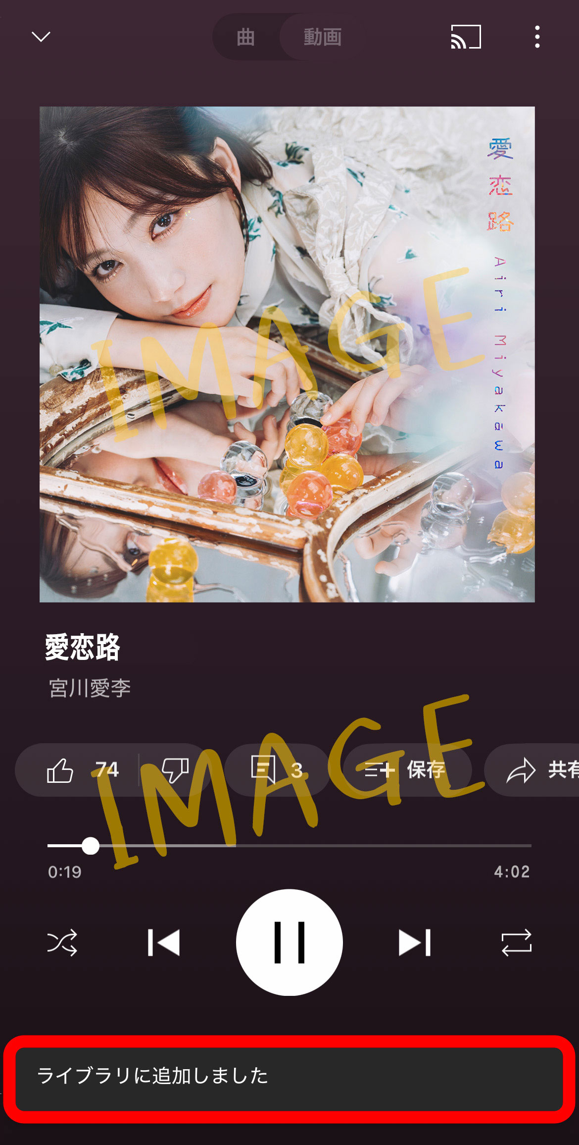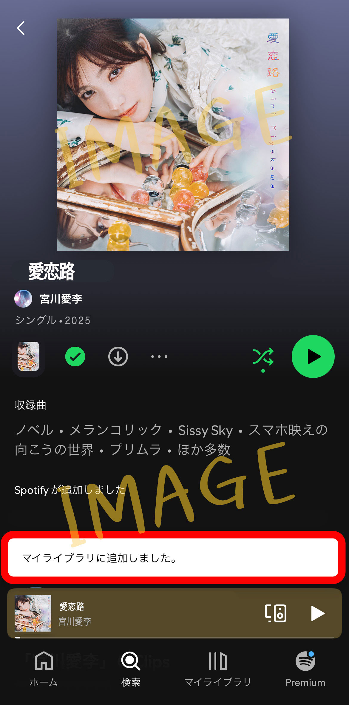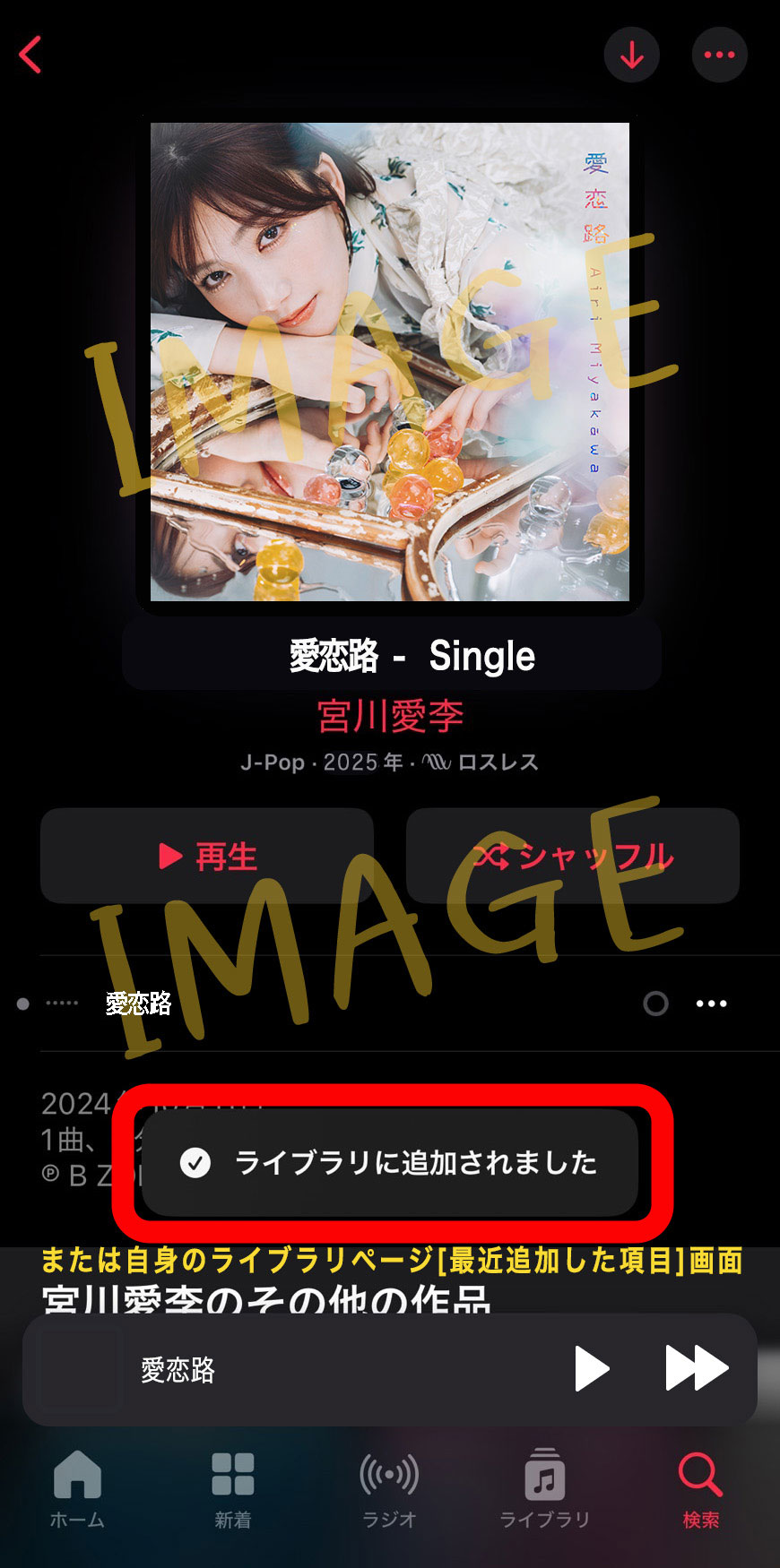 - 「マイライブラリに追加しました」の文字が表示された状態で、スクリーンショットする。